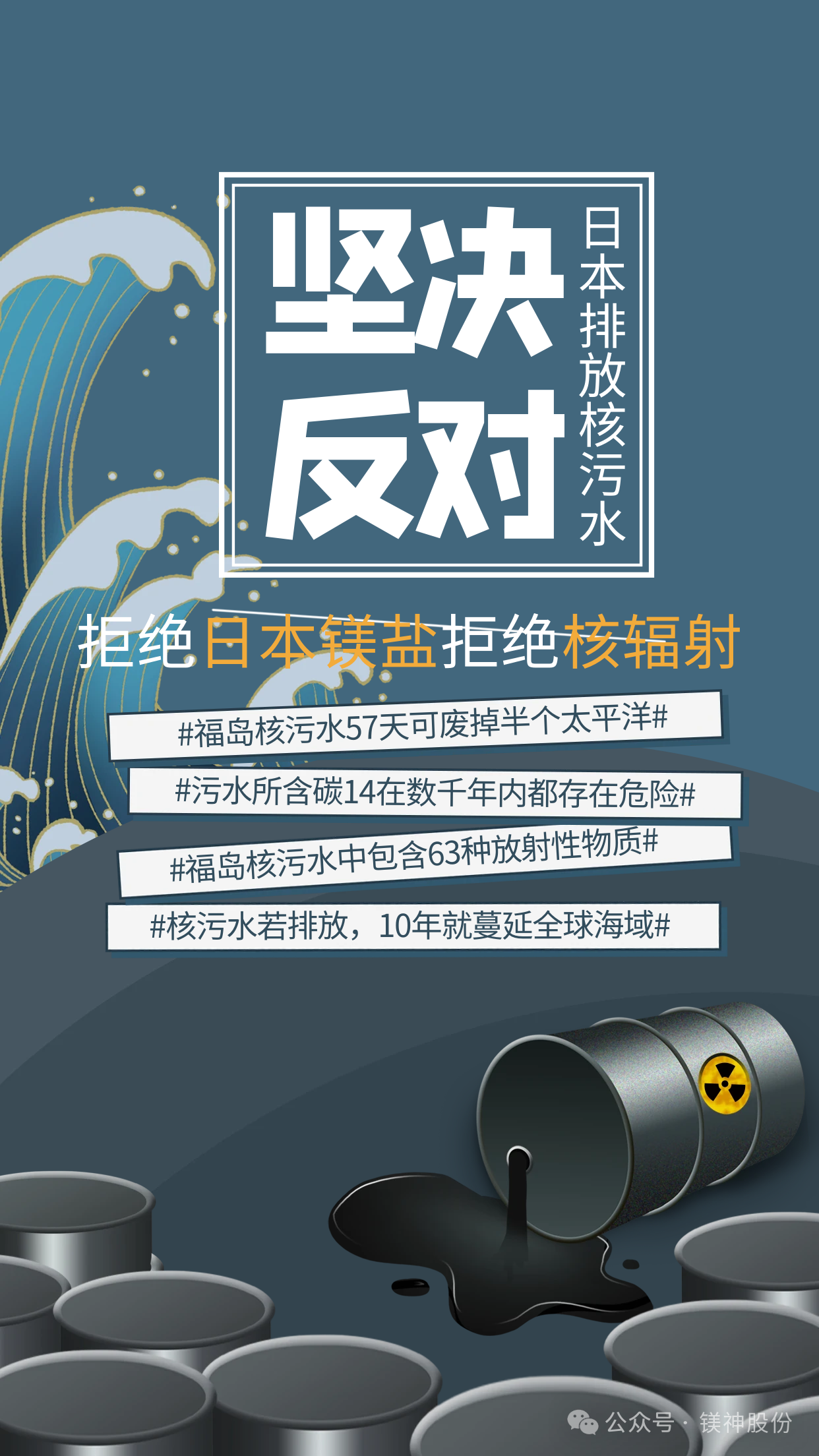 長期以來,這些企業采用“海水法”以海水中的鎂成分為主要原料,制造銷售鎂鹽產品。而鎂鹽在工業中廣泛應用,如樹脂穩定劑和阻燃劑等工業用產品、抑酸劑和功能性輔料等醫藥、食品用產品。這些產品作為環境友好、安全性高的產品在國內外廣泛使用。然而,日本自核污水排海后已發生多起“因食用當地海鮮引起食物中毒”、“當地海灘上出現大量異常死亡海鮮”類似事件,同樣是來自于海水的日本鎂鹽其對人類的危害程度可想而知。