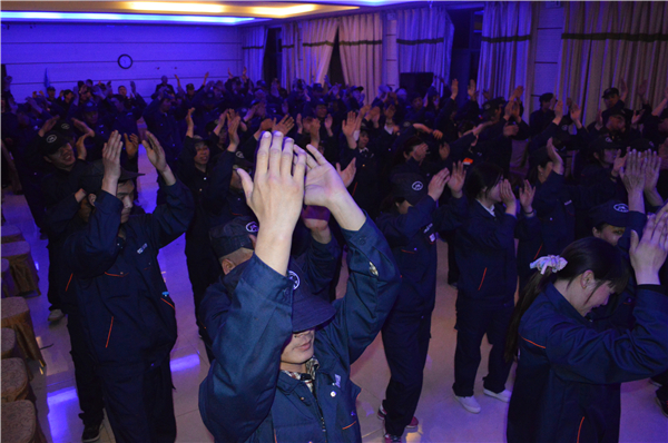 ? ? 拓展訓練第一天早上六點半,在明星機械的大門口集合。